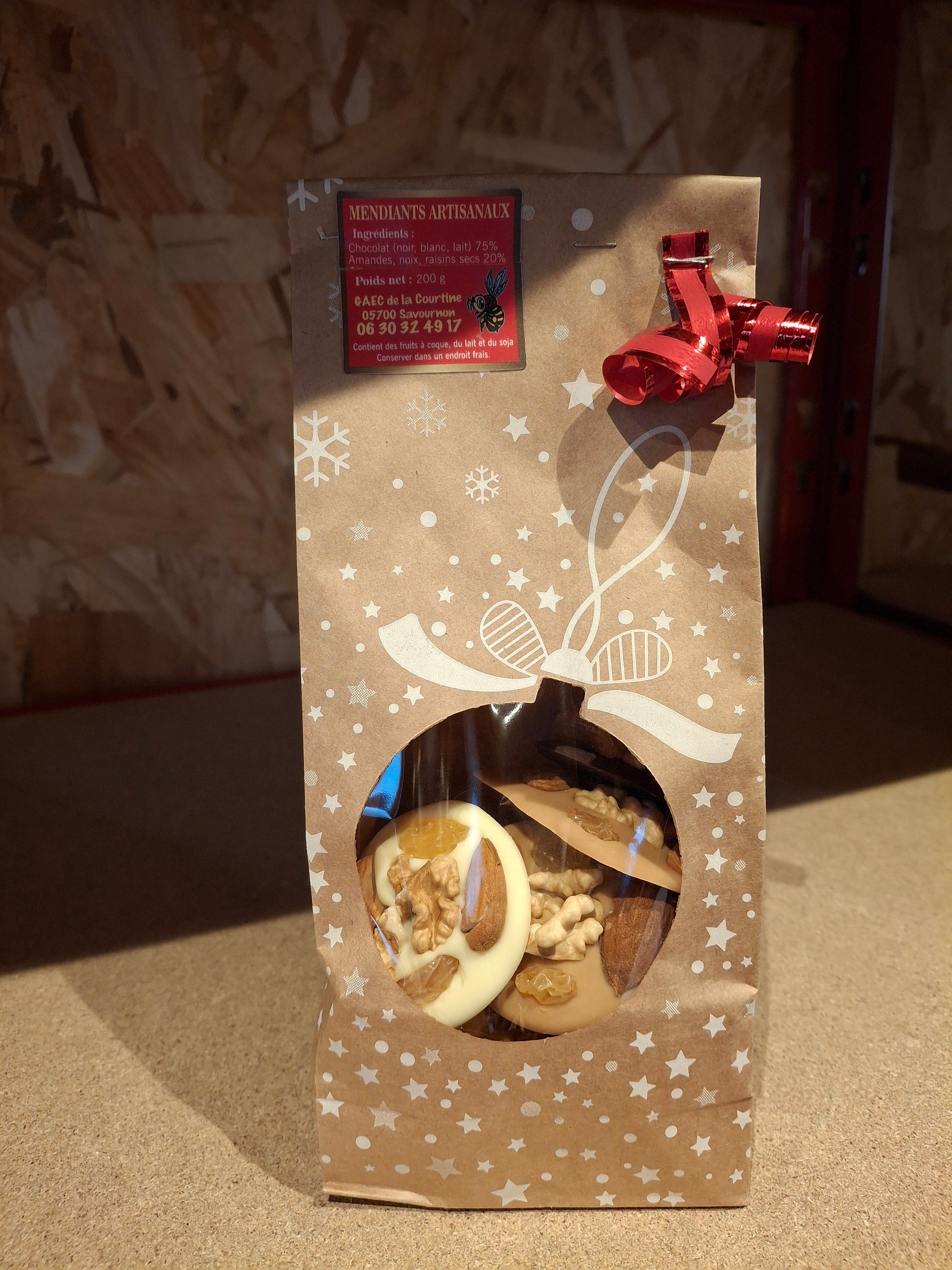 Les mendiants sont confectionnés a partir des amandes et des noix récoltés sur notre exploitation agricole.