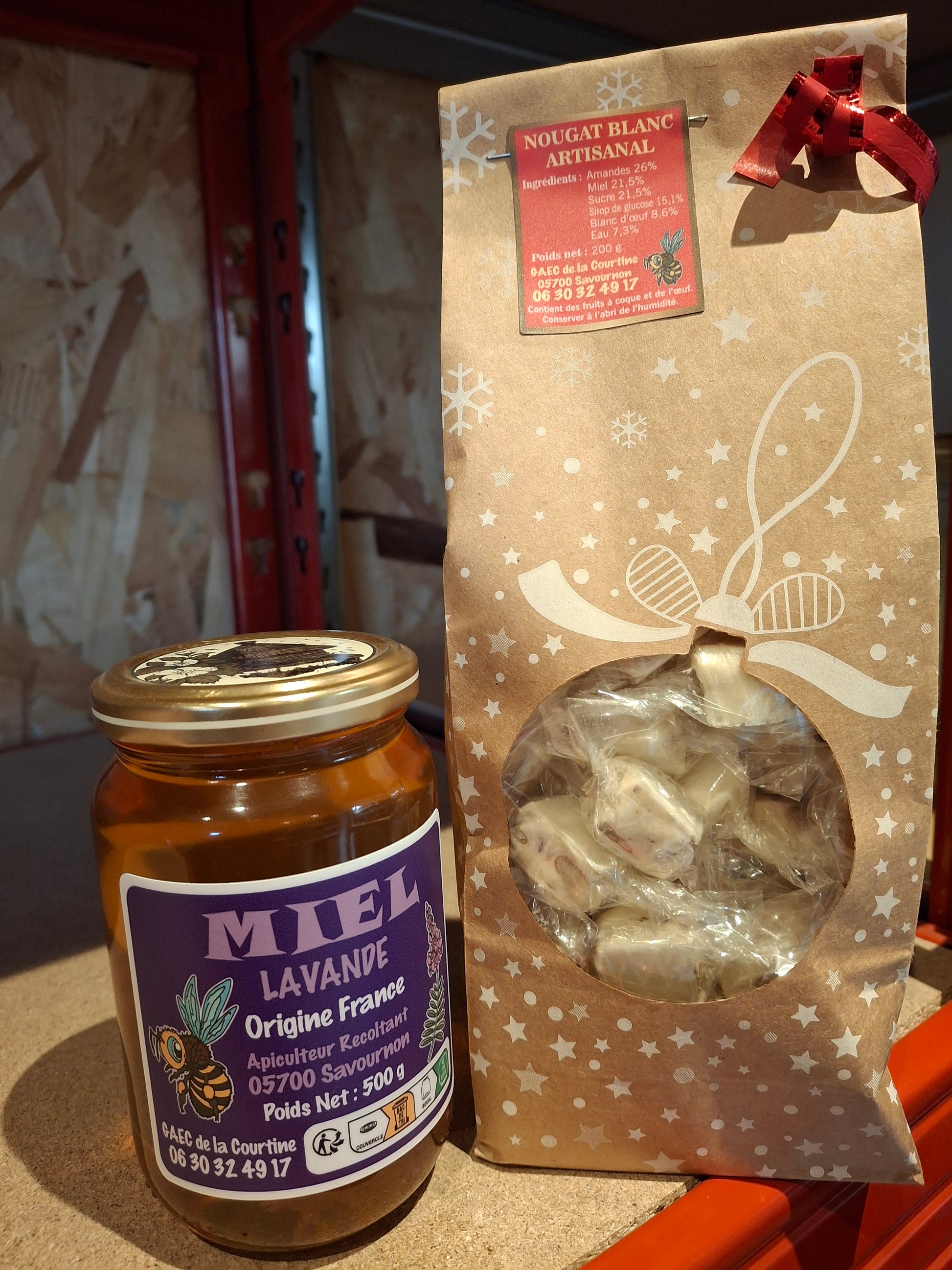 Notre nougat blanc est une douceur fondante où se rencontrent la finesse du miel de lavande de notre récolte et le croquant des amandes soigneusement torréfiées